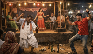 अलीकडच्या काळात ग्रामीण भागातील यात्रांमध्ये चिंताजनक दृश्ये पाहायला मिळत आहेत. गावातील मनोरंजनासाठी आयोजित करण्यात आलेल्या तमाशाच्या फडावर, एका बाजूला दारूच्या नशेत बेजबाबदारपणे नाचणारा पती, तर दुसऱ्या बाजूला त्याच्याच पावलावर पाऊल ठेवत अविवाहित मुलगाही नशेत धुंद होऊन नाचताना दिसतो. एकाच कुटुंबातील दोन पिढ्या अशा प्रकारे व्यसनाच्या गर्तेत सापडलेल्या पाहून गावकऱ्यांच्या मनात खंत आणि चिंता निर्माण होत आहे.