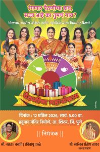 या कार्यक्रमाचे आयोजन १२ एप्रिल २०२६ रोजी सायंकाळी ६.०० वाजता हनुमान मंदिर, निमोणे (ता. शिरूर, जि. पुणे) येथे करण्यात आले आहे. “रंगणार पैठणीचा डाव, सज्ज आहे का तुमचं गाव?” या आकर्षक घोषवाक्यामुळे महिलांमध्ये विशेष उत्साह दिसून येत आहे. कार्यक्रमात सहभागी होणाऱ्या महिलांना विविध खेळ, स्पर्धा आणि आकर्षक बक्षिसांची संधी मिळणार असून विजेत्यांना पैठणीसारखे खास पारितोषिक देण्यात येणार आहे.